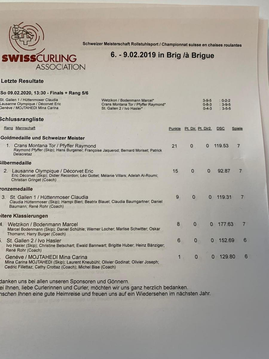 6. bis 9. Februar 2020 Rollstuhlcurling Schweizer Meisterschaft